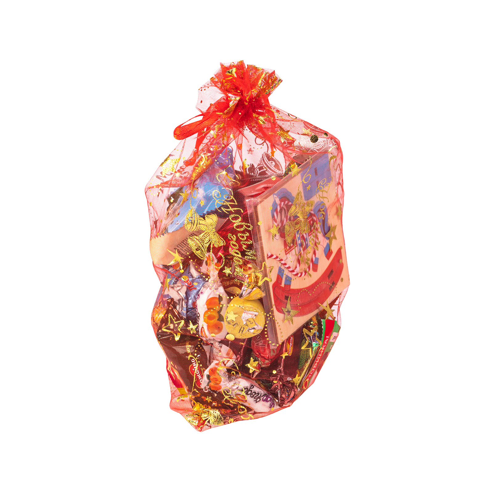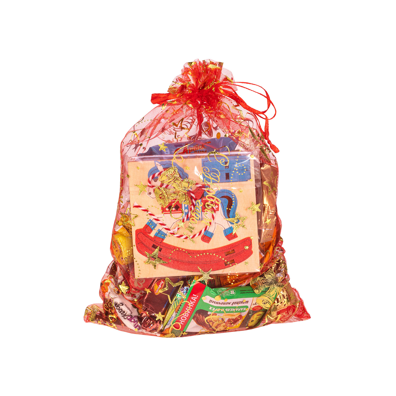 Формула идеального новогоднего сладкого подарка проста: привлекательная яркая упаковка и вкусные сладости внутри! Именно такими качествами и обладает подарочный набор “Колокольчики”! Это ярко-красный текстильный мешочек, украшенный со всех сторон золотистыми звездочками. Сверху он прочно перевязан маленькой аккуратной веревочкой, потянув за которую, вы откроите самый настоящий ларец с сокровищами. В мешочке бережно хранятся отборные лакомства под любые вкусовые предпочтения - даже самый привередливый сластена найдет здесь свой любимый десерт. Также в состав подарка входит небольшой памятный сувенир в виде символа наступающего года. Благодаря ему, праздничное настроение в вашем доме будет царить и после новогодних праздников!
