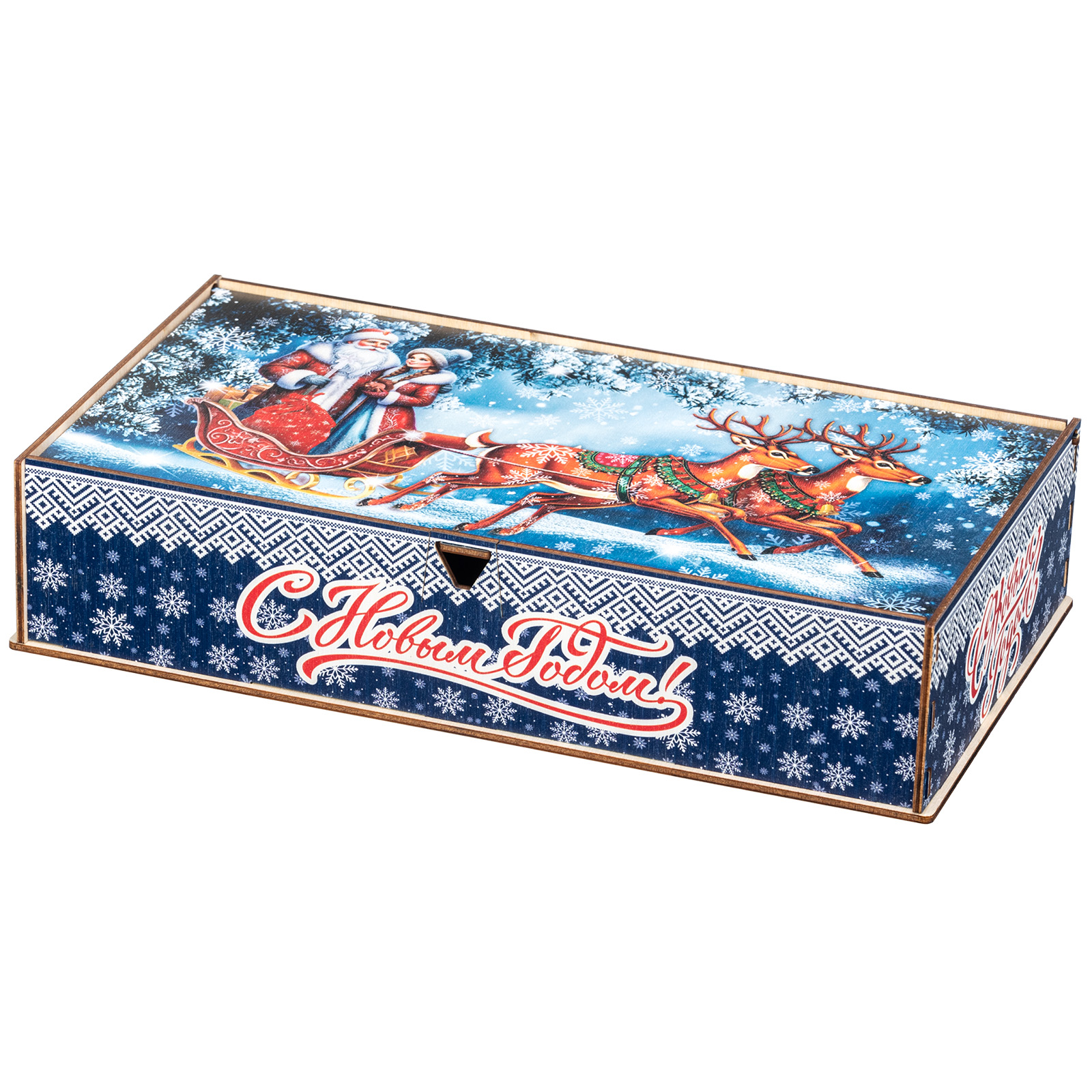 Интересный вариант новогоднего подарка – «Сказочное Путешествие». Он представлен в разделе Дерево. Отлично подойдет на подарок в 2026 году с символом Лошадь. Внутри такого презента находится кондитерский набор весом 1000 граммов.