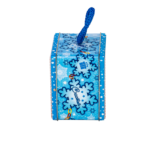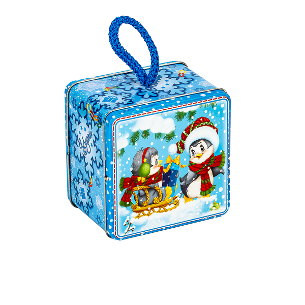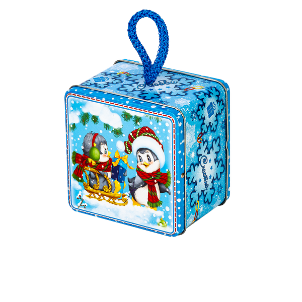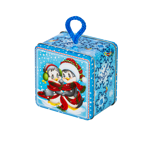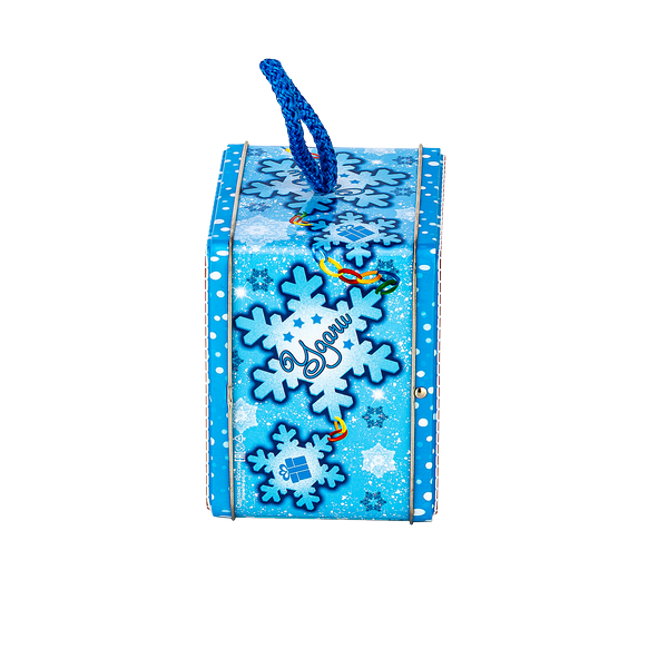 “Арктическая сумочка” - это компактный, но безумно очаровательный подарочный набор, который идеально подойдет в качестве презента на любой детский праздник.  Он представляет собой нежно-голубую металлическую коробочку с небольшой ручкой-шнурком. Со всех сторон коробочка украшена новогодними узорами, а на ее крышке изображена парочка милых пингвинчиков, которые очень тепло и нежно смотрят друг на друга. Несмотря на скромные размеры, этот подарок смог вместить себя не только 20 разнообразных вкусных сладостей, но и целую россыпь позитивных эмоций, которых хватит на весь наступающий год!